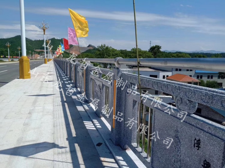 鑄造石欄桿可以和其他形式的護欄組合成不同形式的組合護欄,被廣泛用于橋梁、河道、市政、園林景觀護欄中,設(shè)計美觀,還可根據(jù)實地要求添加各類象征元素。立柱采用鑄造石欄桿,有著造型美觀、時尚、環(huán)保、不易變形、造價低廉的性能優(yōu)點;橫管和豎管采用不銹鋼復(fù)合管,表面經(jīng)過靜電烤漆處理,抗沖壓性強,絕緣阻燃,經(jīng)久耐用。融入浮雕板的設(shè)計,既體現(xiàn)了護欄防護功能,又反映了我國的民族文化源遠流長,造型獨特。